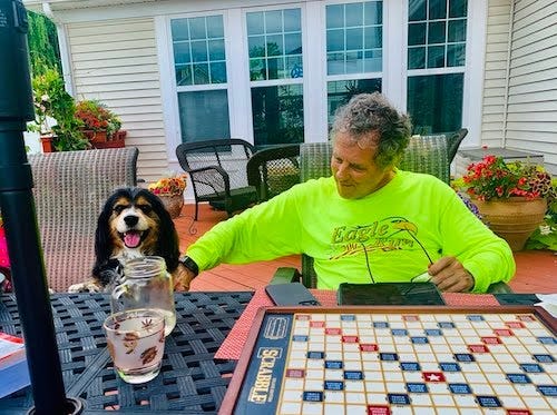 Connie and I (along with Franklin and Walter, of course) play games out on our deck when it’s warm enough.